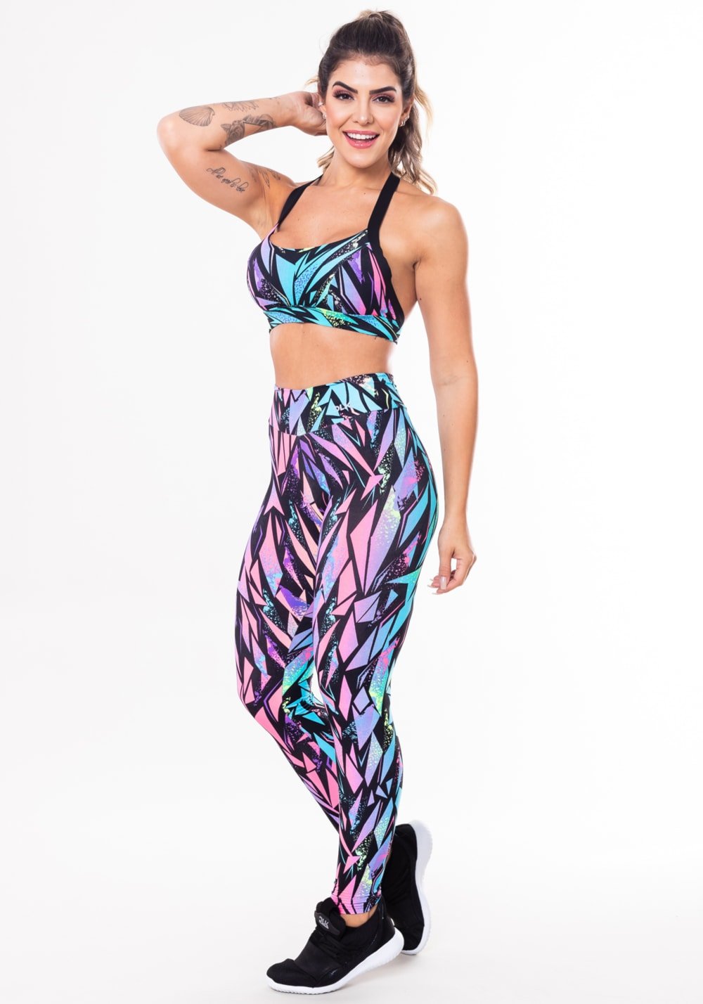 Conjunto fitness match poliamida estampada urban (top+calça)
