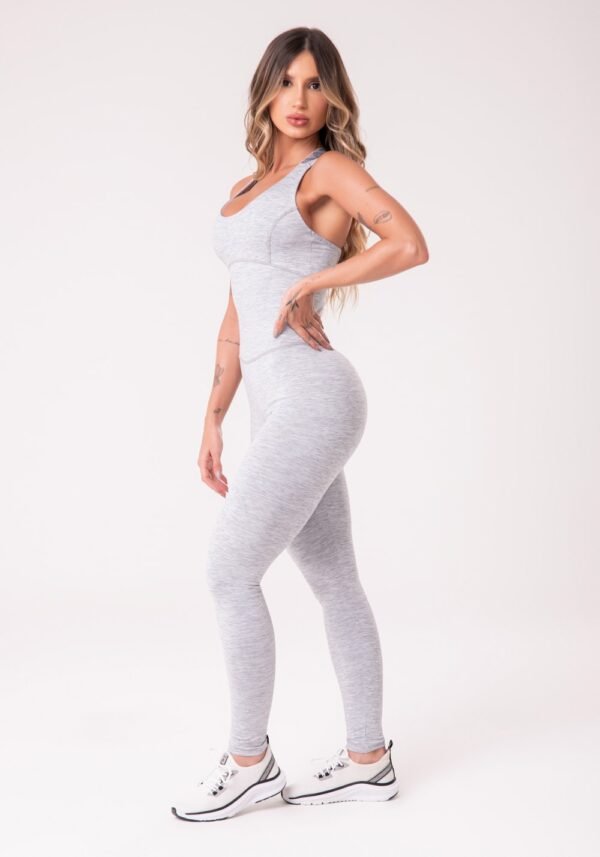 Macacão fitness feminino preto de alcinha com recortes em tule intense