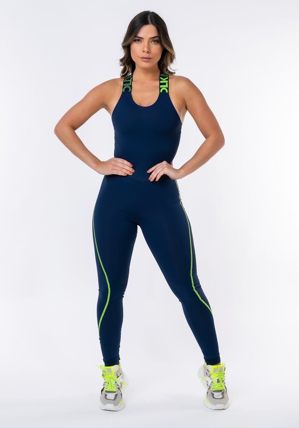 Macacão sem bojo nation elástico cruzado nas costas azul marinho